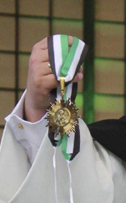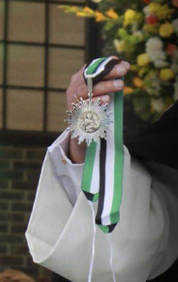 El verde, tradicionalmente color de la virtud, de esperanza, que engendra en el joven sajoniano esa actitud de equilibrio que fortalece la fe y que busca la verdad.